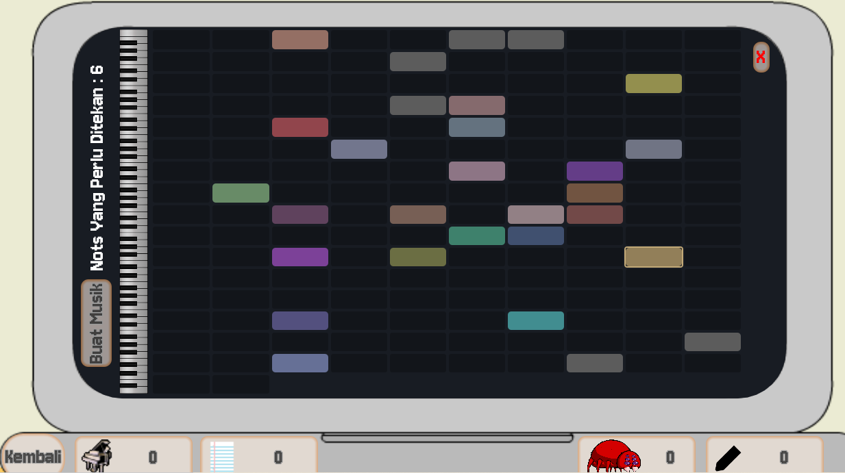 Mouse: Digunakan untuk semua interaksi (Klik menu, menggambar, drag-n-drop flowchart, menekan beat).