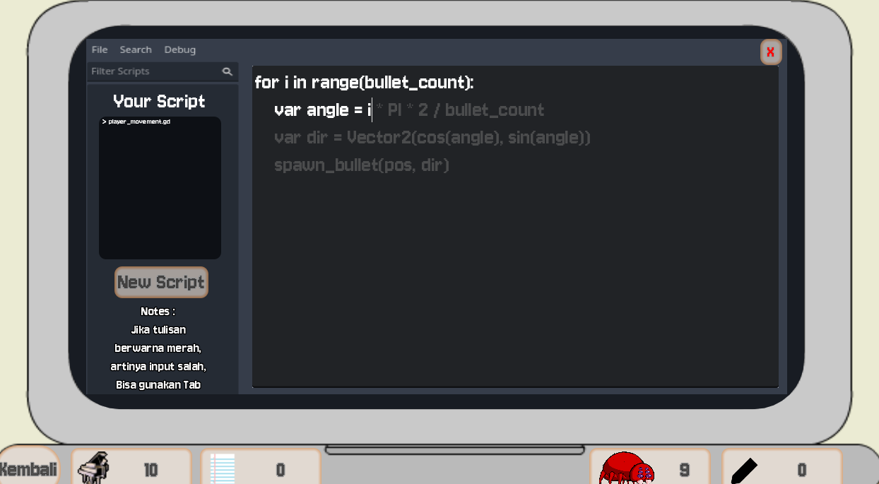 Keyboard: Digunakan dalam minigame Programming untuk mengetik ulang kode yang muncul di layar.
